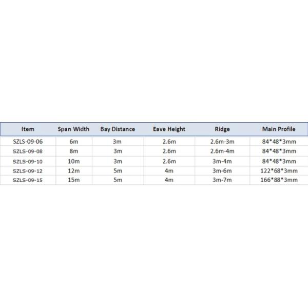| Wall system: sandwich panel, ABS solid wall, trapeaoidal steel wall, PVC coated polyester fabric. | ||||
